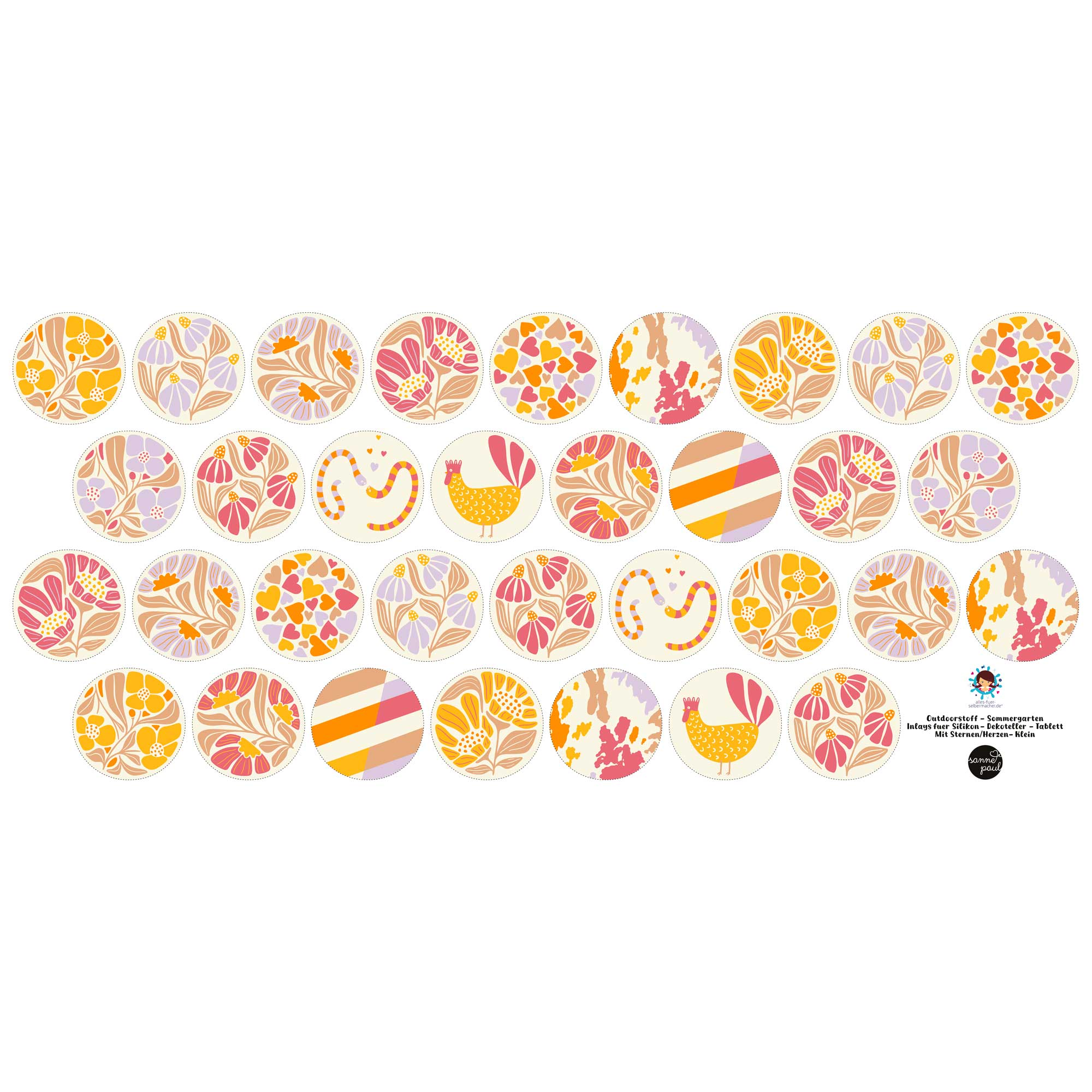 MITTEL: Auf dem Stoffpaneel findest Du 16 vorgedruckte Inlays – perfekt, um Deine Gießprojekte auf das nächste Level zu heben! 🙂
