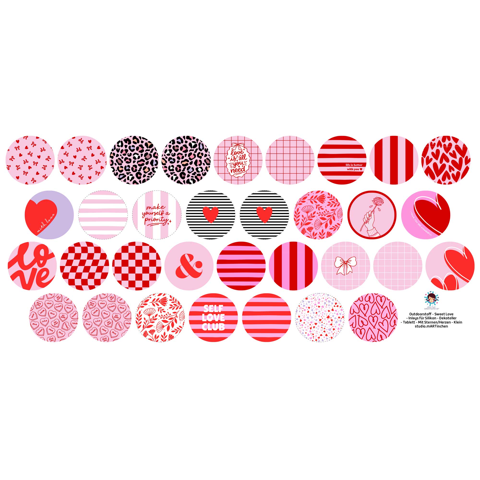 Auf dem Stoffpaneel findest Du 33 vorgedruckte Inlays – perfekt,