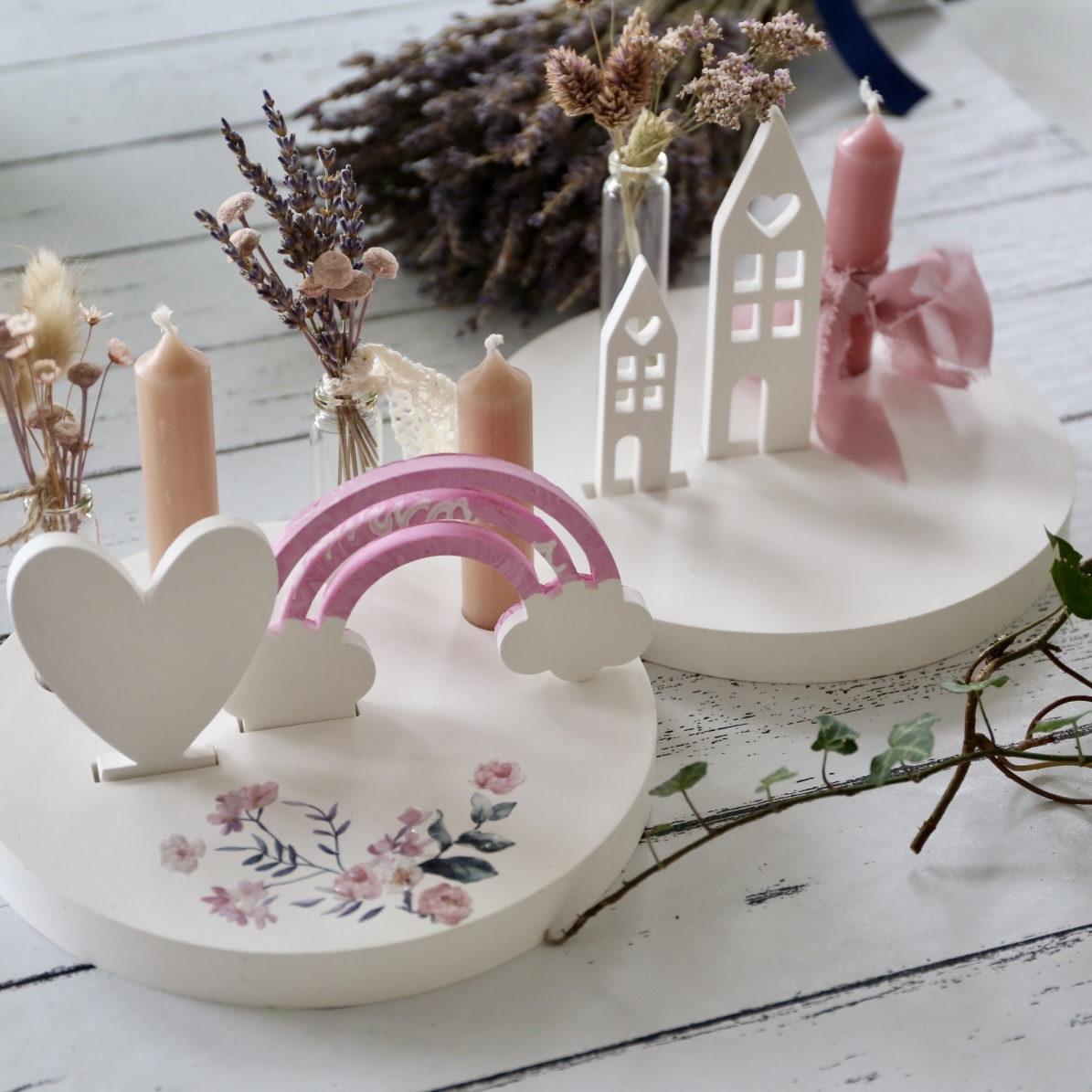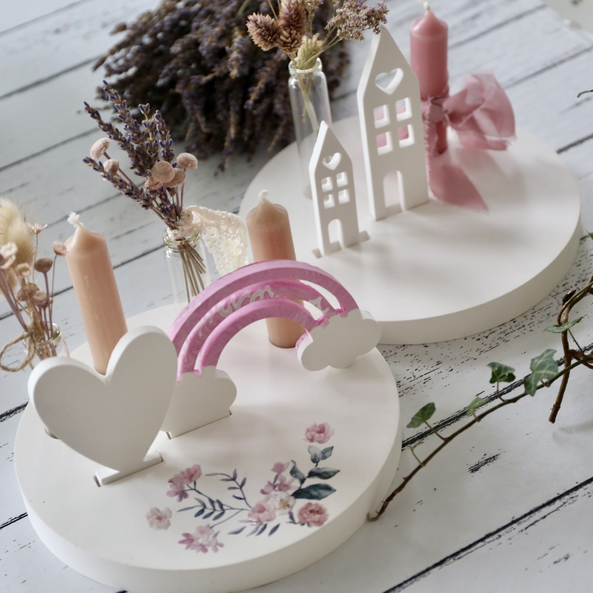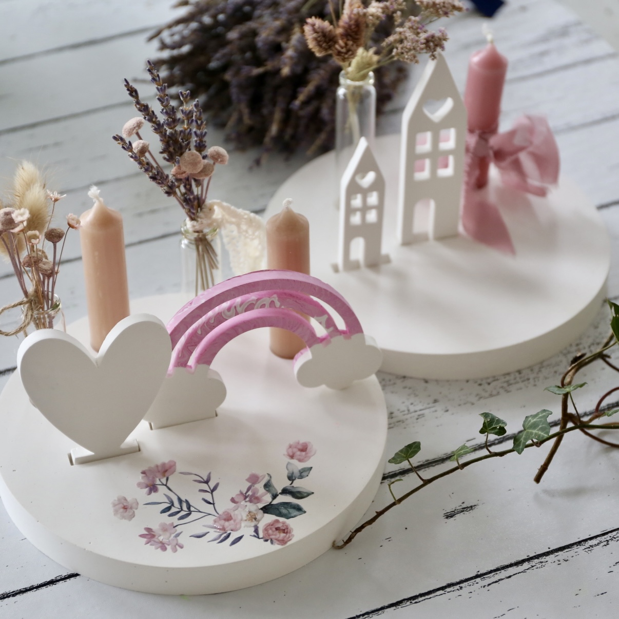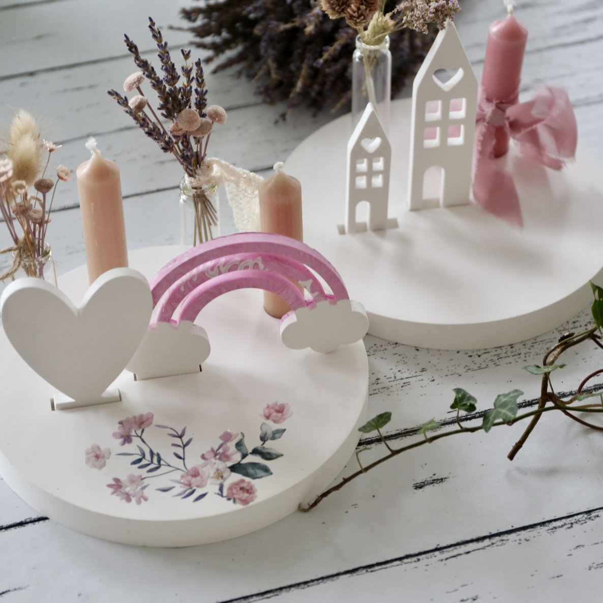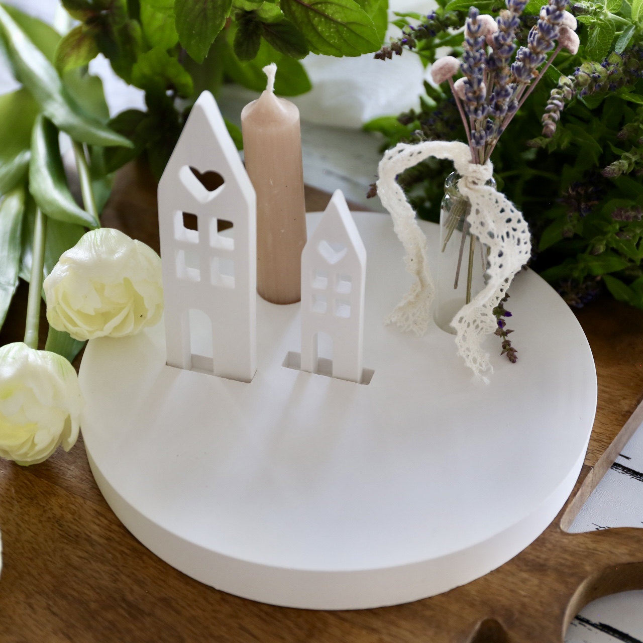 Dekoteller mit Kerzenhalter und Steckleiste – 2 Varianten