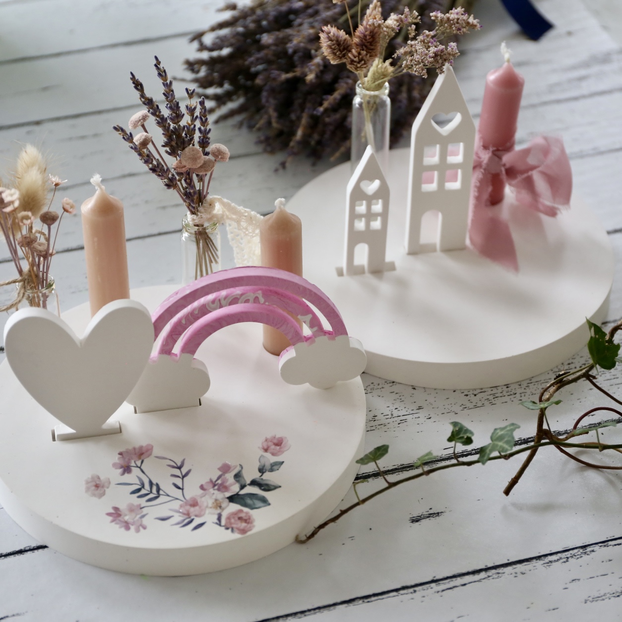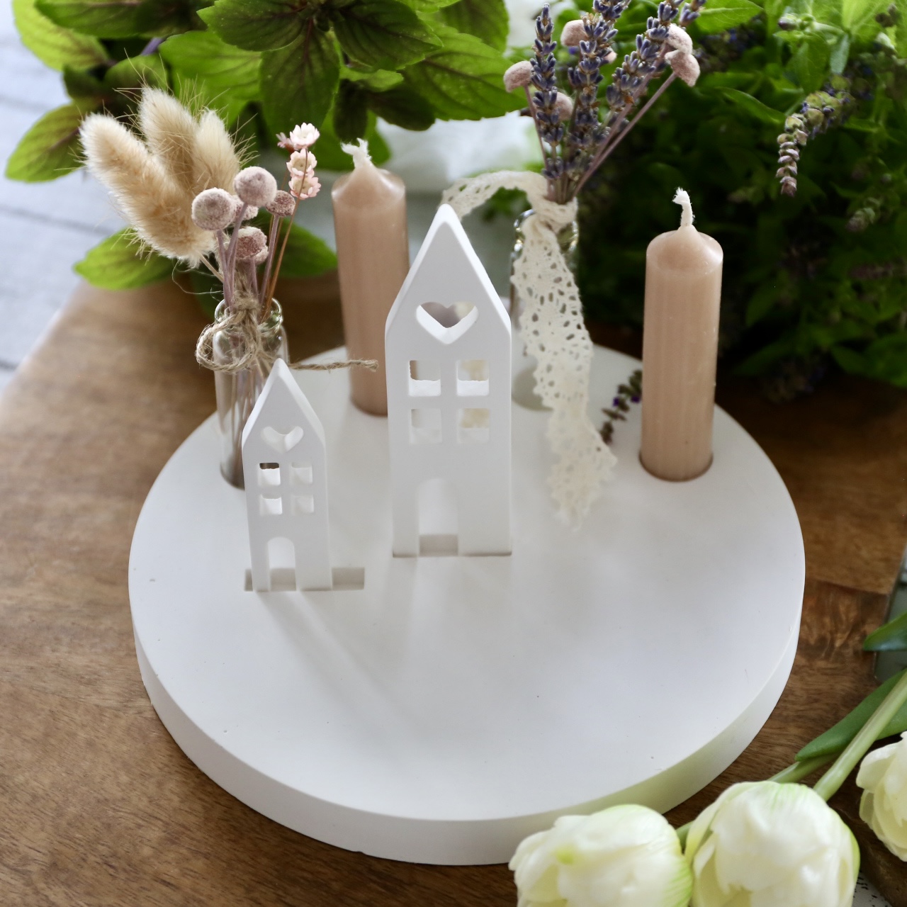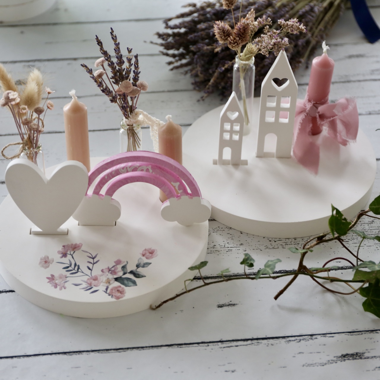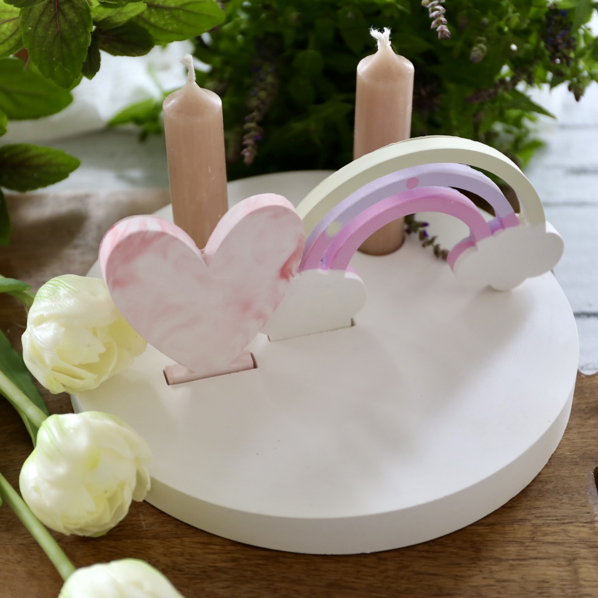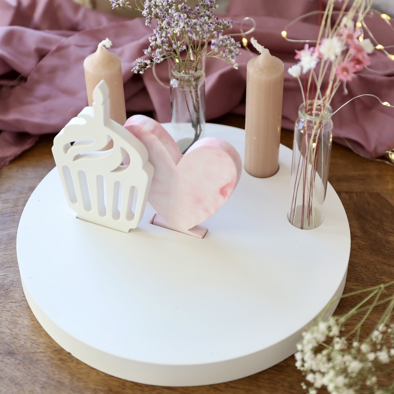 Dekoteller mit Kerzenhalter und Steckleiste – 2 Varianten