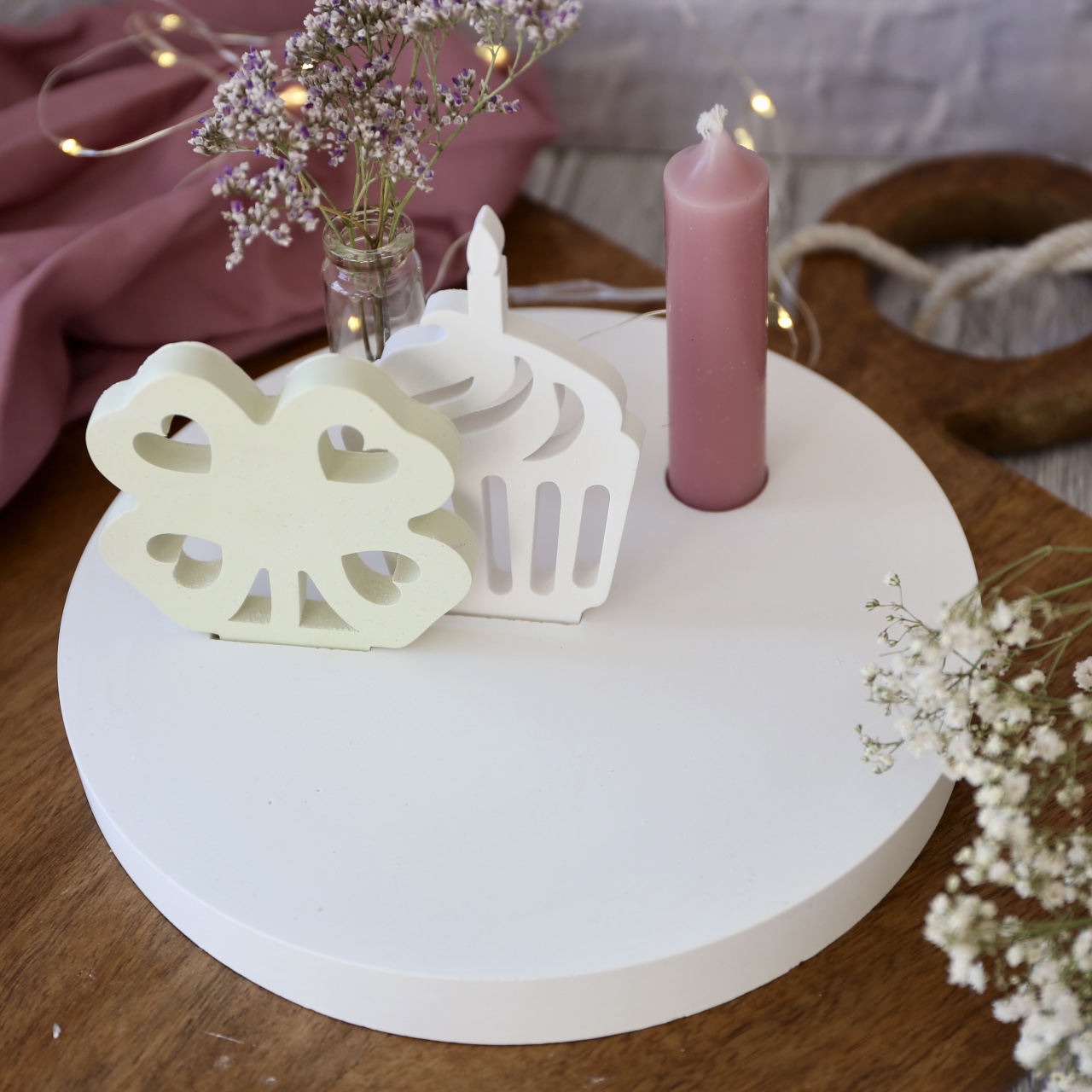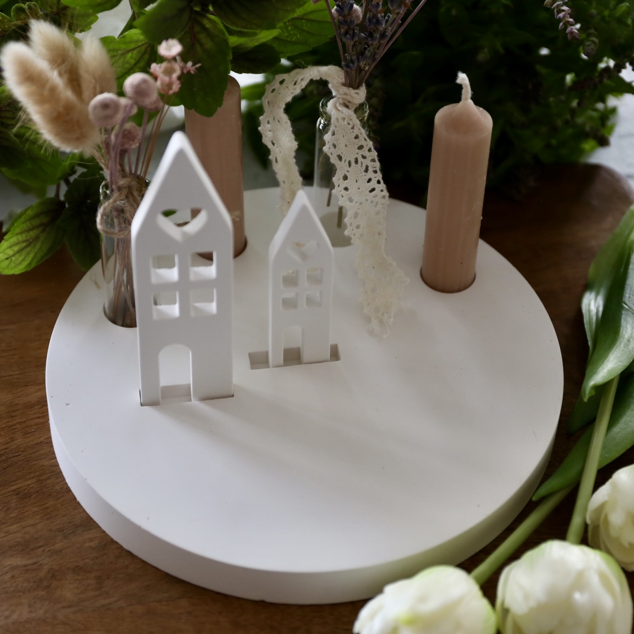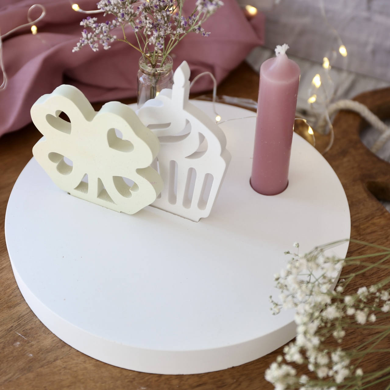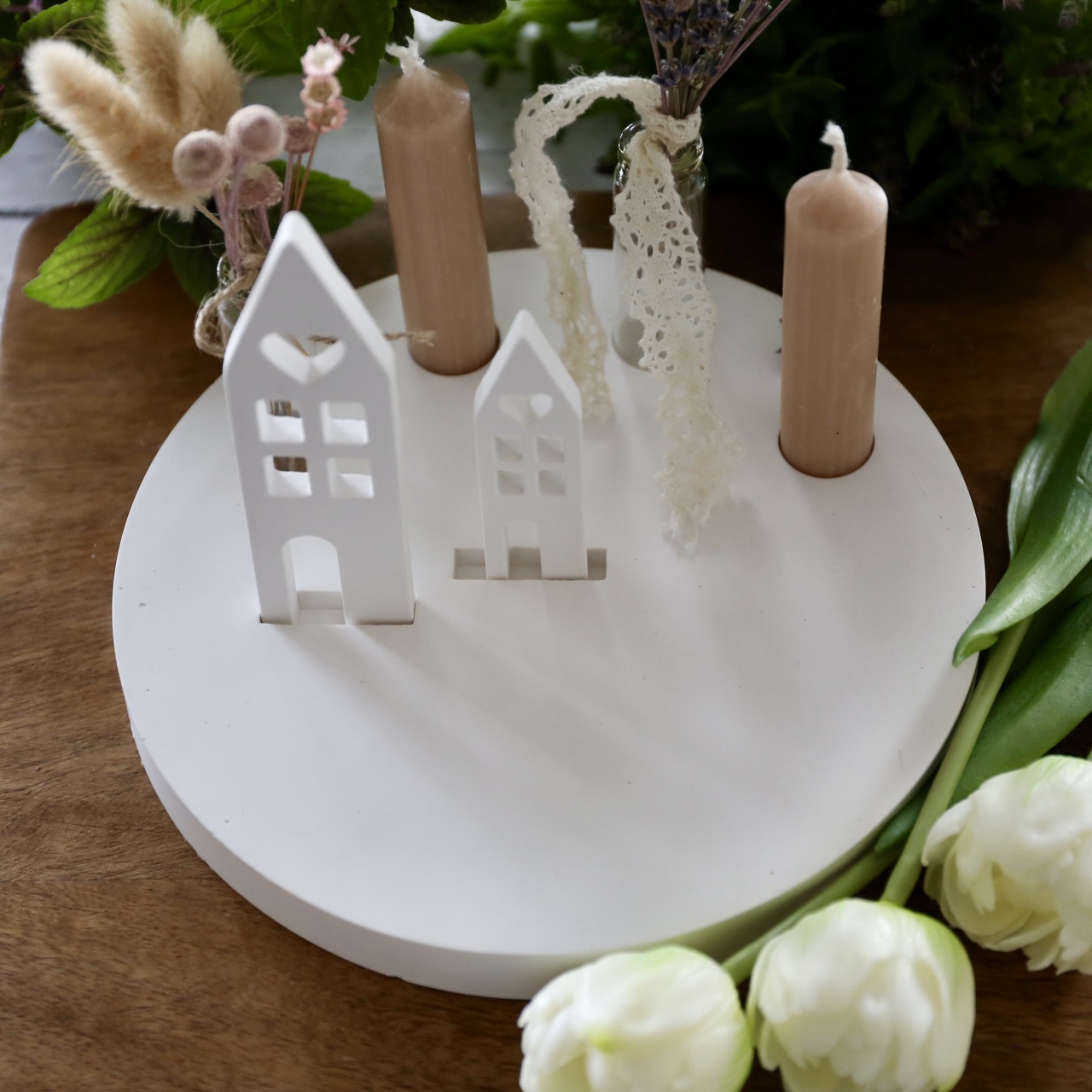Dekoteller mit Kerzenhalter und Steckleiste – 2 Varianten