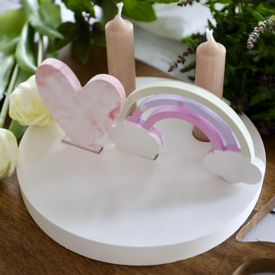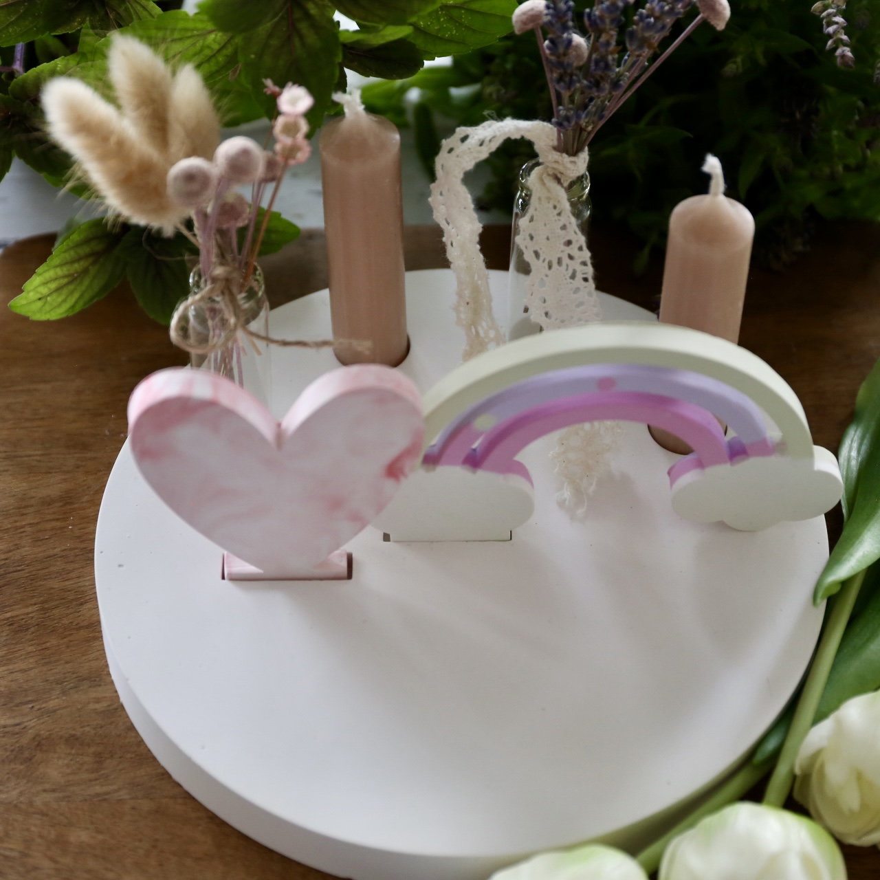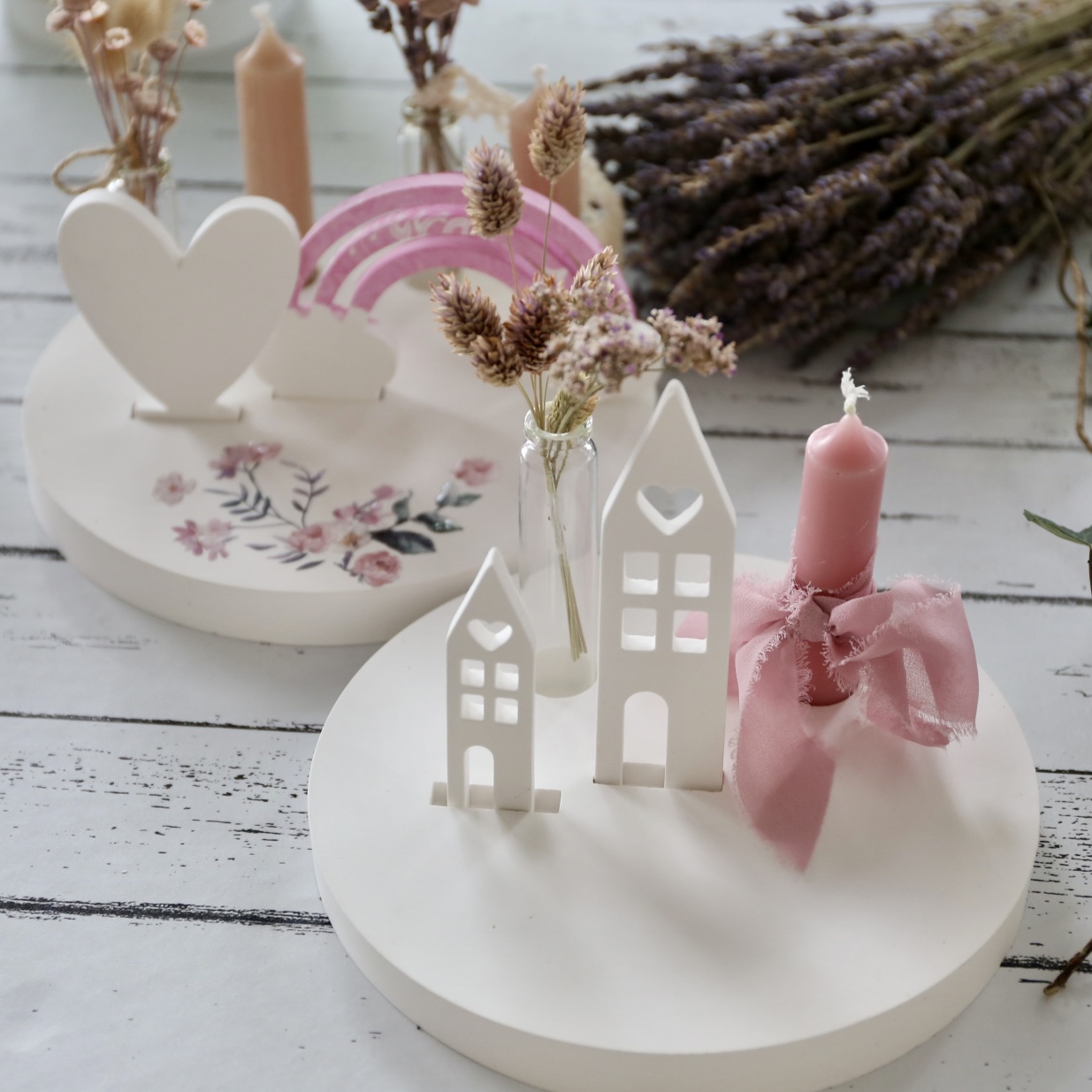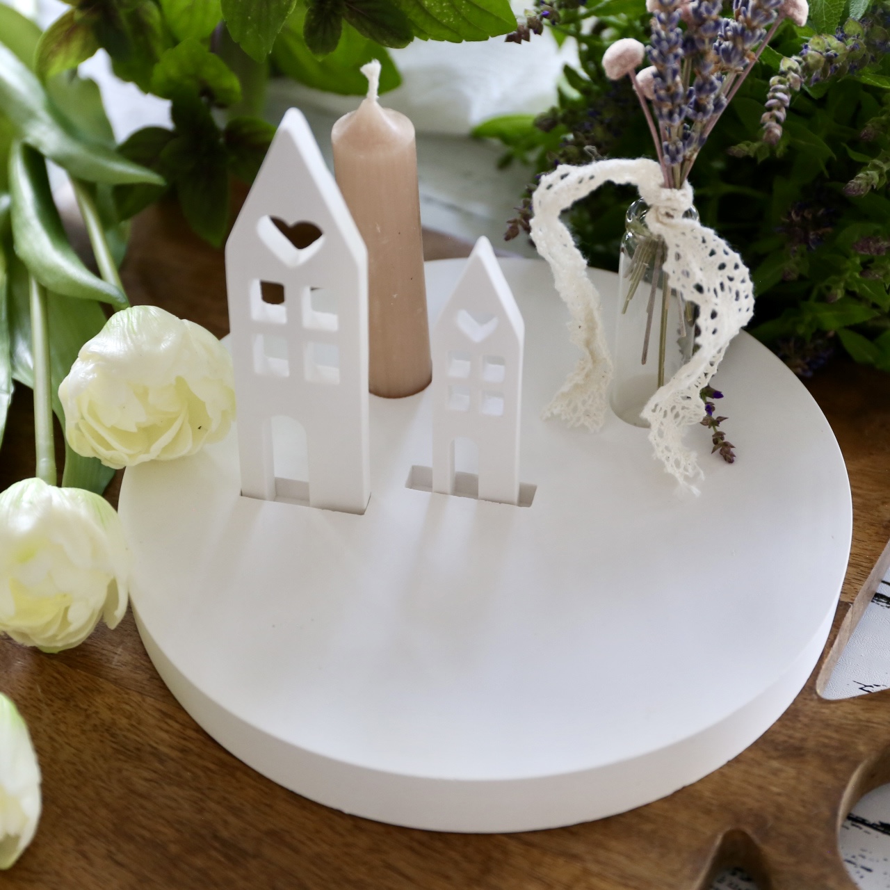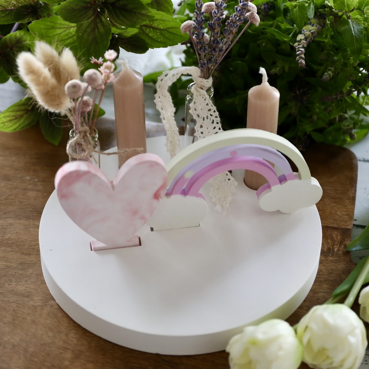 Dekoteller mit Kerzenhalter und Steckleiste – 2 Varianten