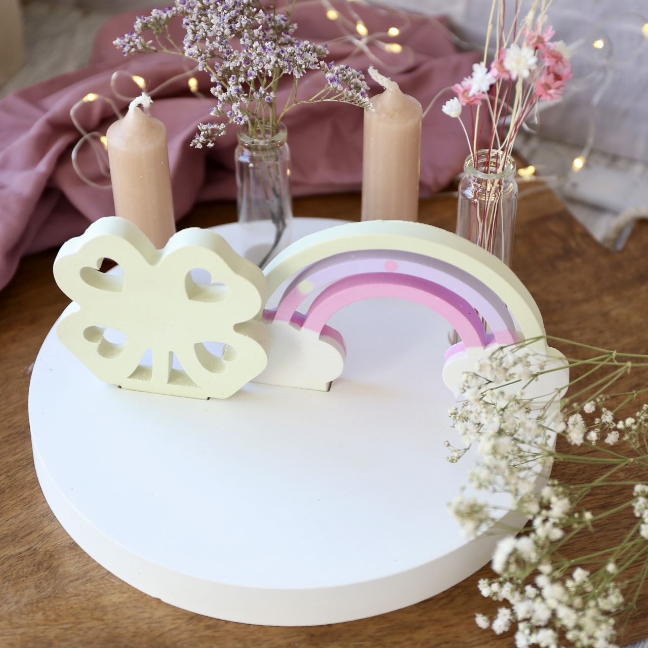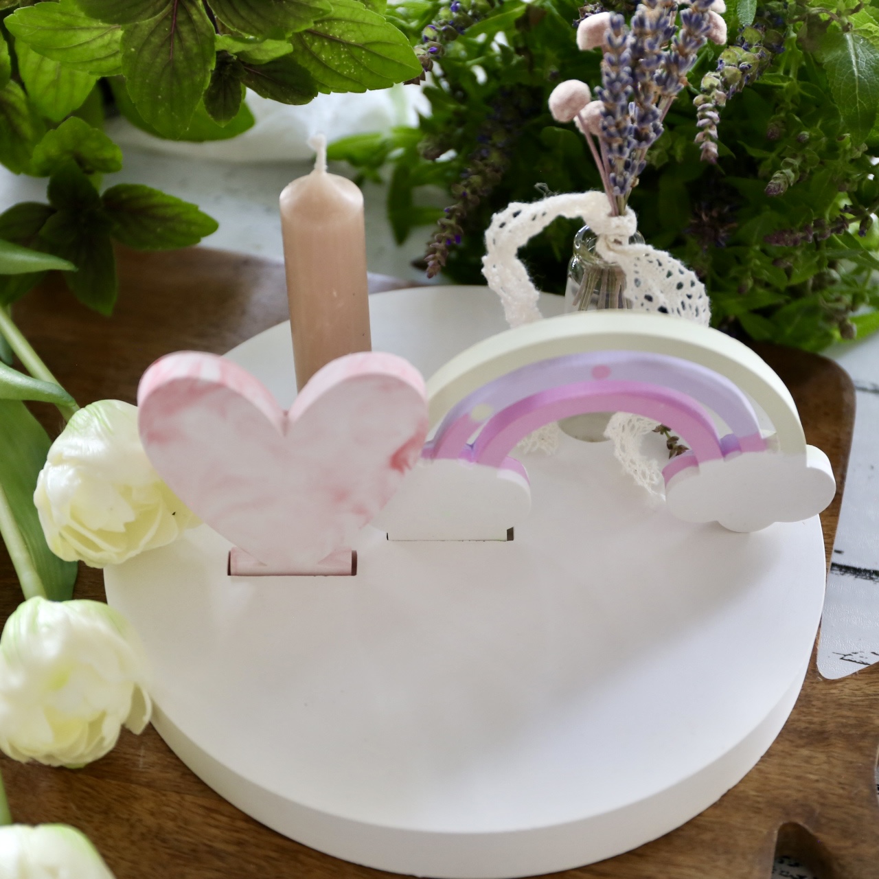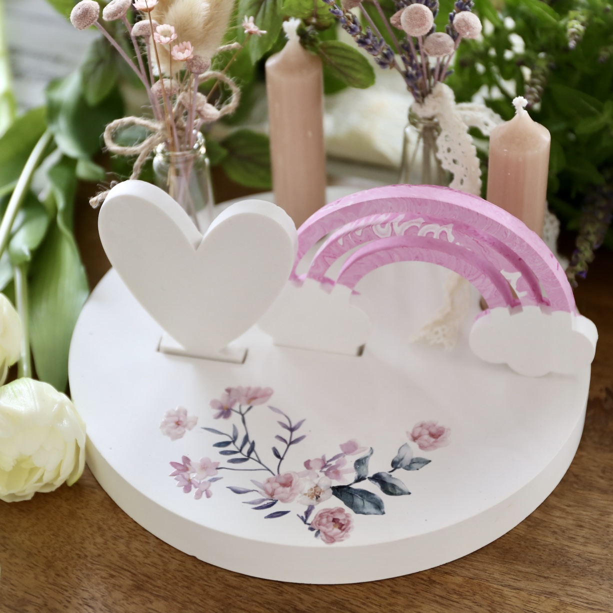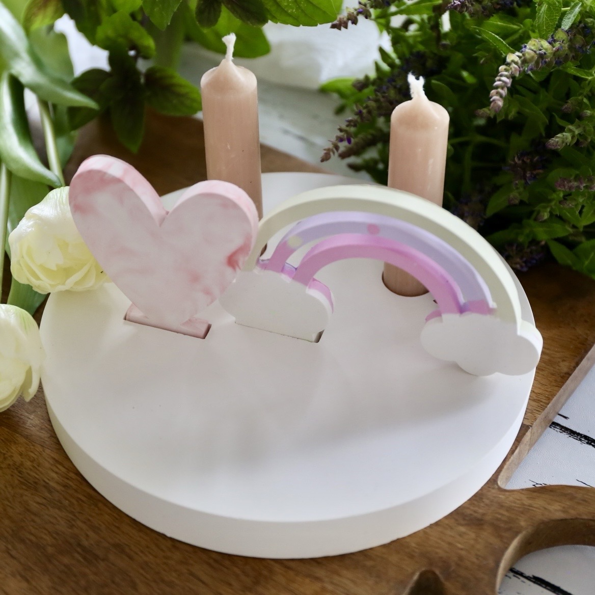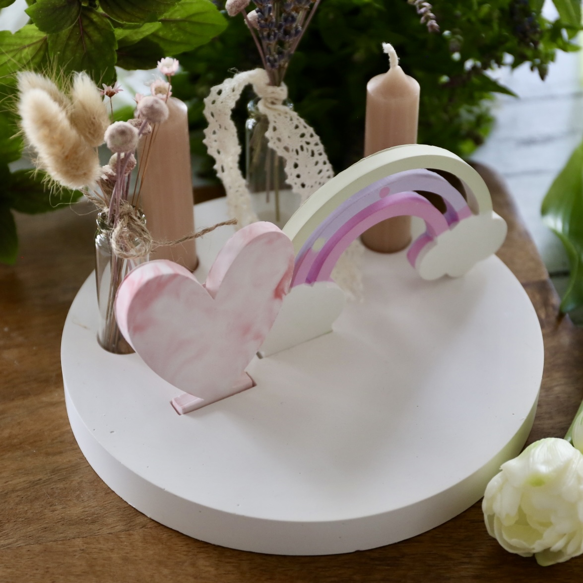 Dekoteller mit Kerzenhalter und Steckleiste – 2 Varianten