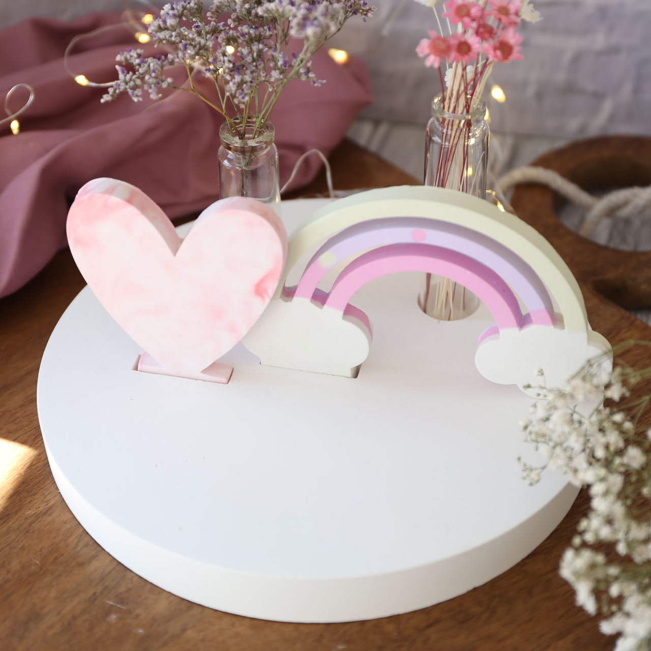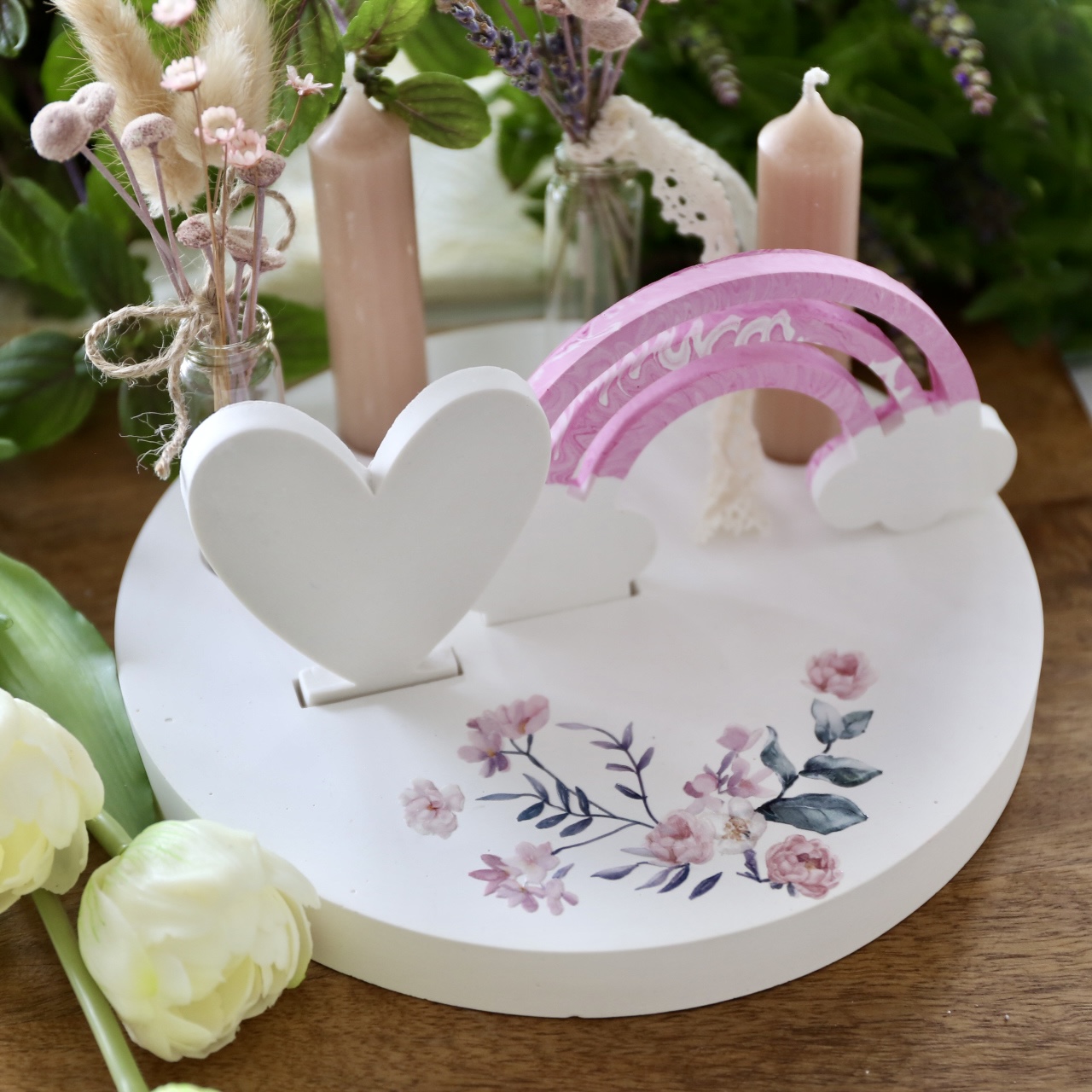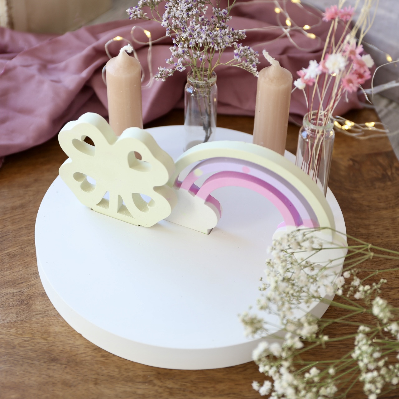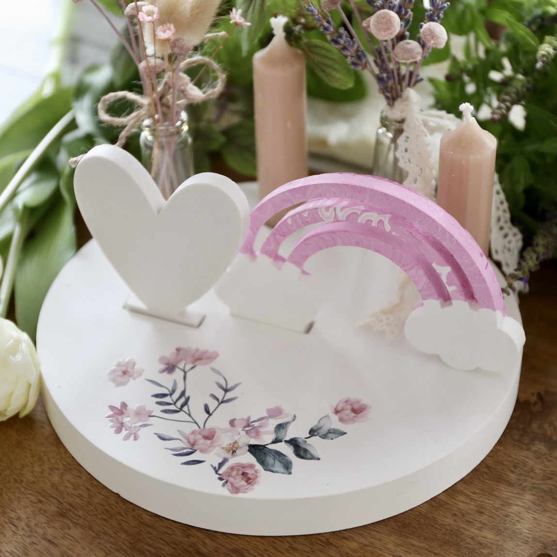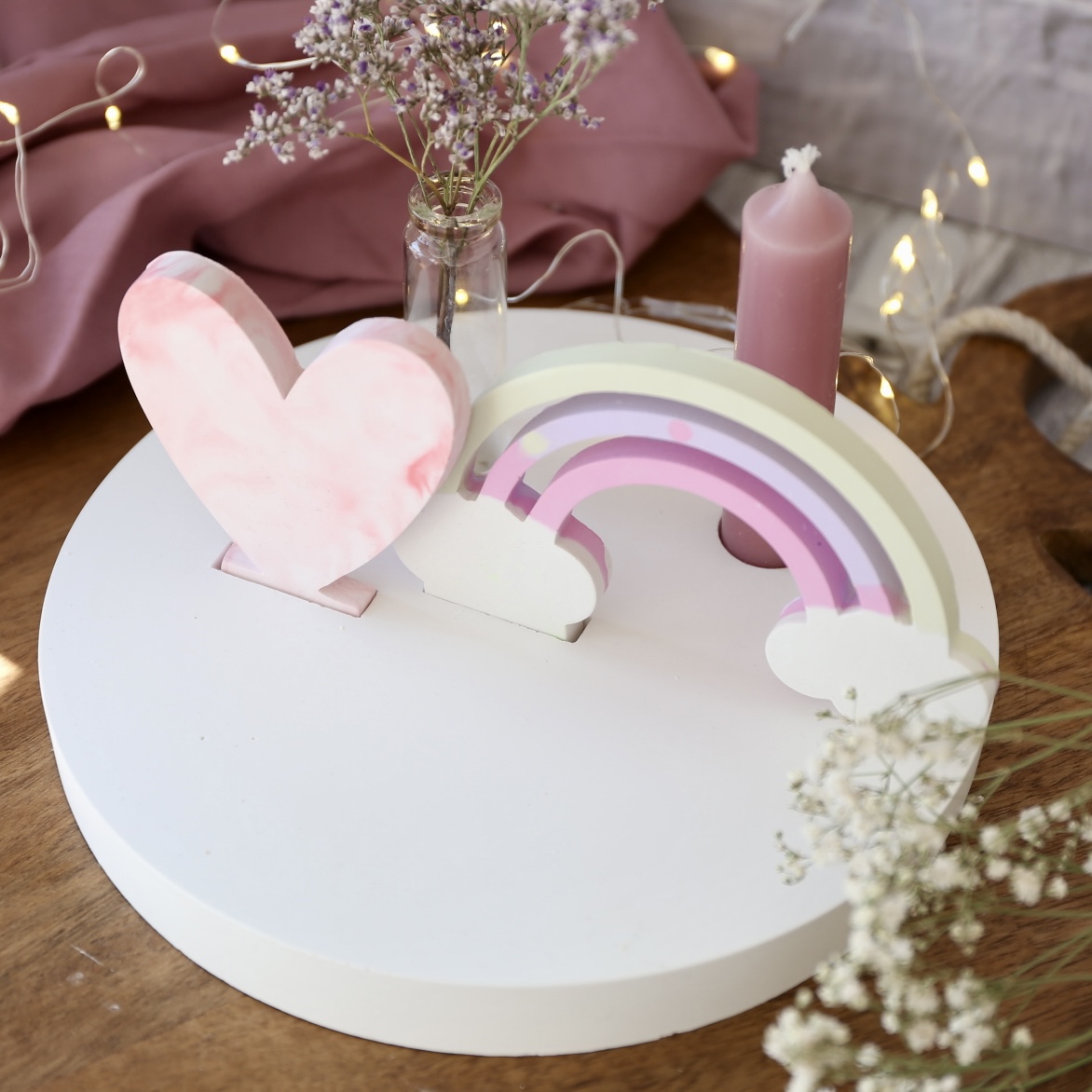 Dekoteller mit Kerzenhalter und Steckleiste – 2 Varianten