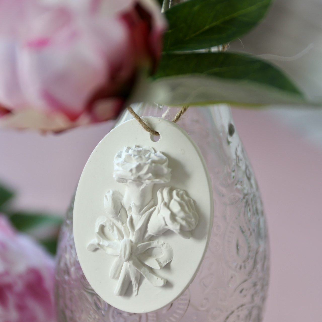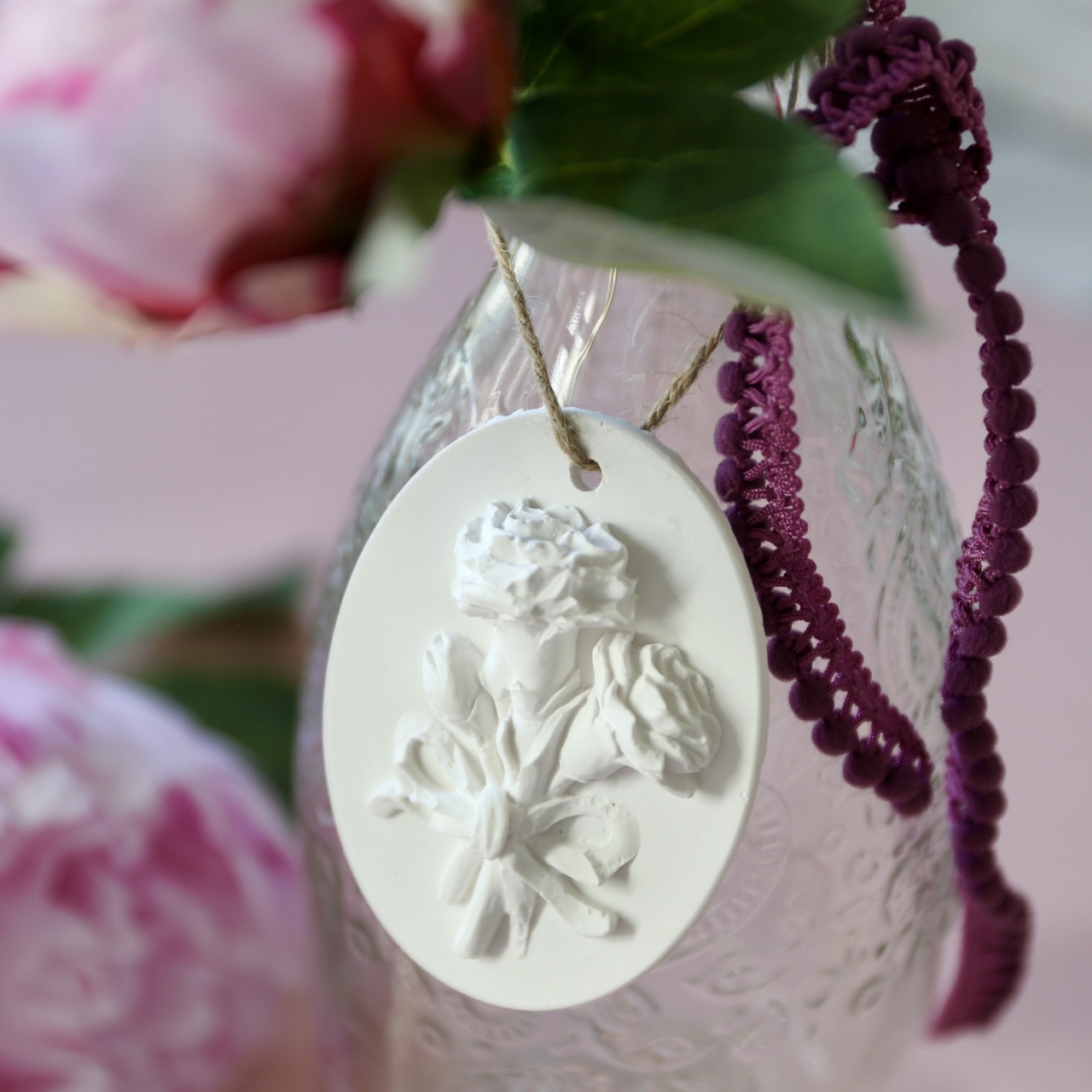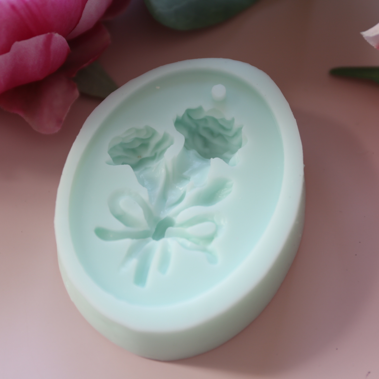 Blumenbild mit Schleife – kleiner Anhänger – oval