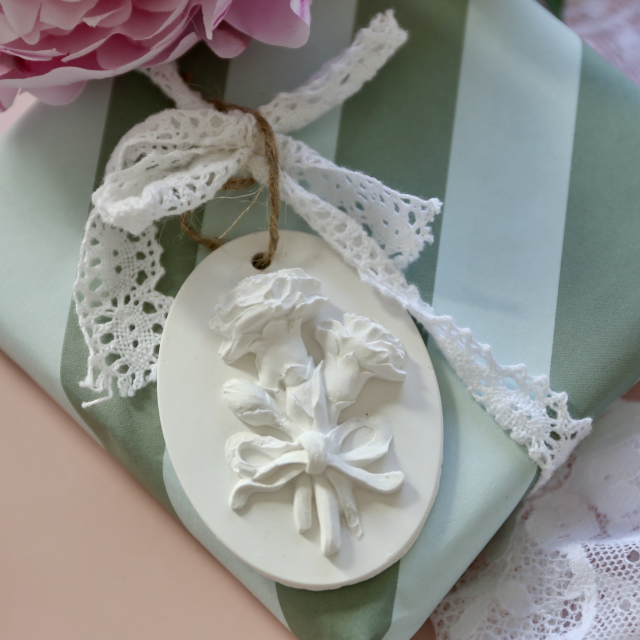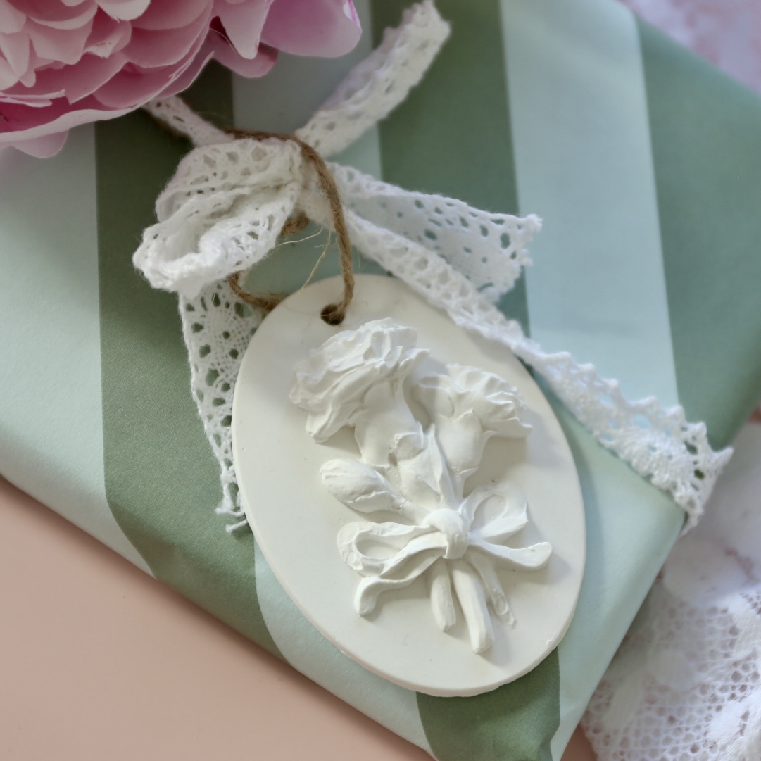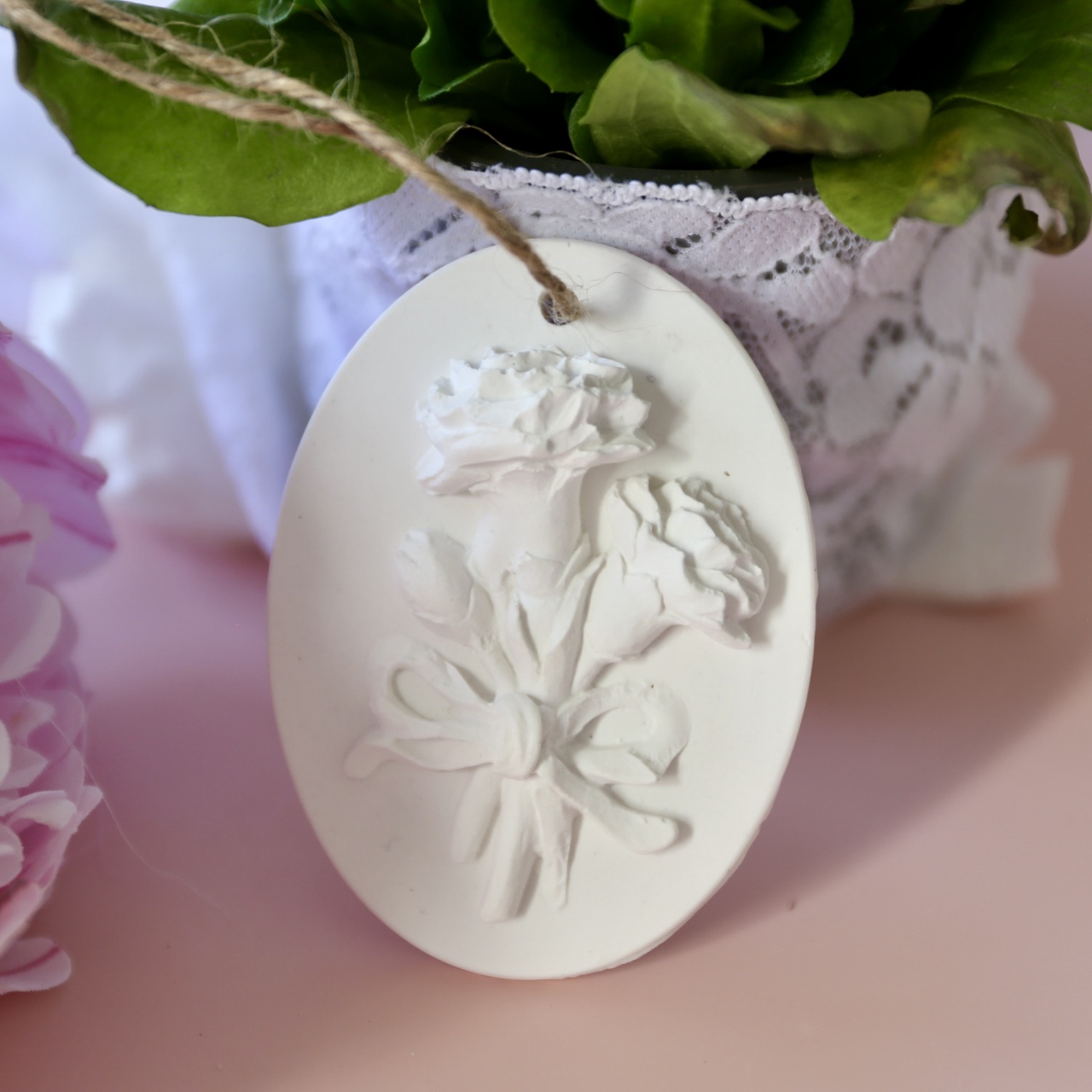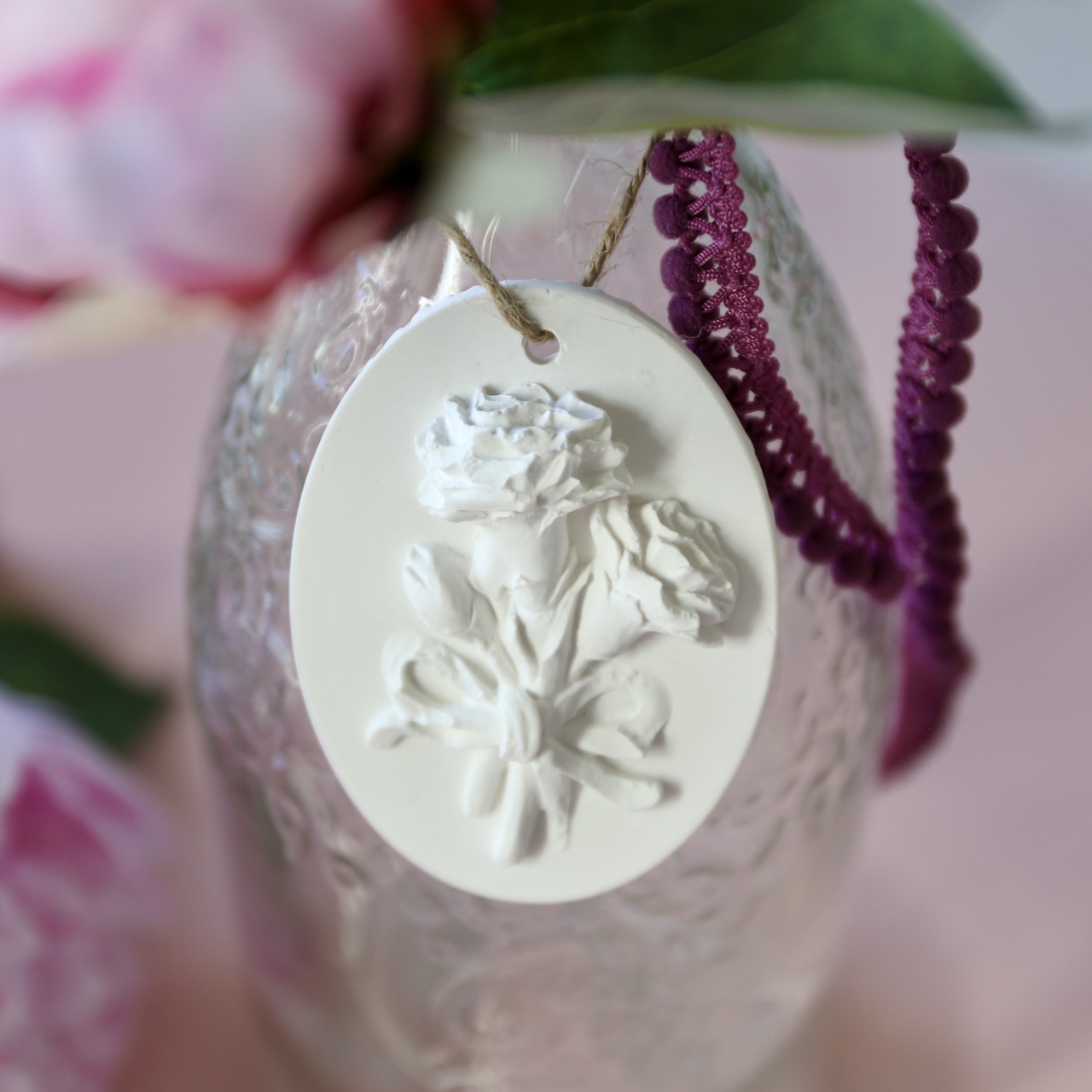 Blumenbild mit Schleife – kleiner Anhänger – oval